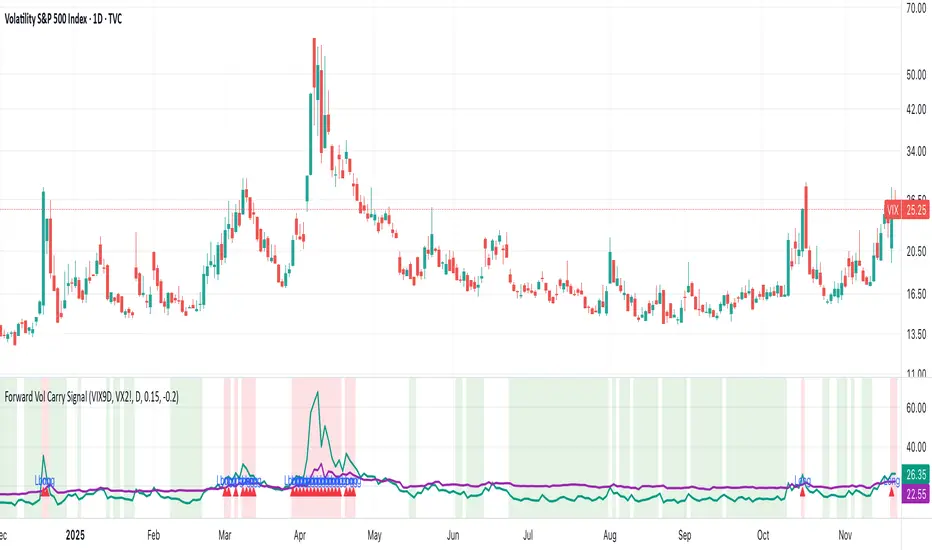 This indicator measures the term structure of volatility by comparing a short-dated volatility index (VIX9D) with a longer-dated volatility benchmark. Its purpose is to detect volatility curve inversions, a condition where short-term implied volatility rises significantly above medium-term implied volatility.