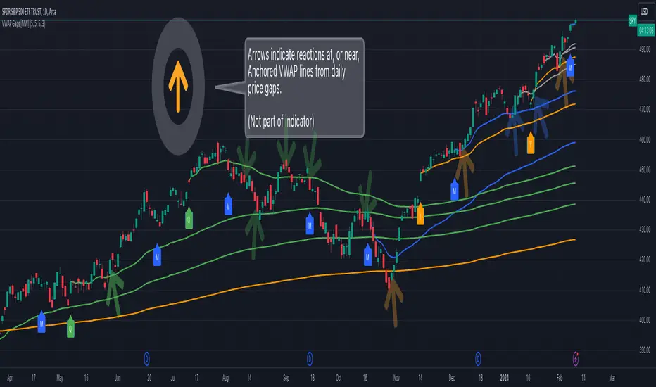 The Multi VWAP from Gaps tool extends the concept of using the Anchored Volume Weighted Average Price, popularized by its founder, Brian Shannon, founder of AlphaTrends. It creates automatic AVWAPS for anchor points originating at the biggest gaps of the week, month, quarter and year. Currently, most standard VWAP tools allow users to place custom anchored VWAPs, but the routine of doing this for every equity being watched can become cumbersome. This tool makes that process multi-times easier. Considering that large gaps can represent a shift in market structure, this tool provides unique and immediate insight into how past daily price gaps can and have affected price action.