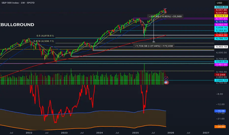 Description: The exact indicator big-macro accounts use: tracks real-time drawdown from the rolling 252-period peak, then plots -1σ (blue) and -2σ (orange) bands on a clean percent scale. Built for weekly charts-shows if a stock, index, or crypto is statistically cheap (hit -1σ) or generational-buy territory (-2σ). Works flawlessly on SPX, Nasdaq, Bitcoin, Gold, Tesla... anything. How to Use (read it aloud like a voice memo): 1. Slap this under any chart, set to weekly timeframe . 2. Flip the price pane to log scale -zero negotiations. 3. Watch the thick red line: • Hovering 0 %? Bullish noise, chill. • Kissing blue (-10 % to -25 %)? Start loading-happens every 1-2 years. • Touching orange (-30 %+)? Panic sale finished. Buy like rent money's burning a hole. 4. Zoom out five-ten years; monthly works too if you want lazy vibes. Daily? Trash-too twitchy. Pro tip: Name your watchlist Panic Plays, drop this in, and ping me when MELI or GOOGL hits orange. I'll confirm if it's actually stupid-cheap.