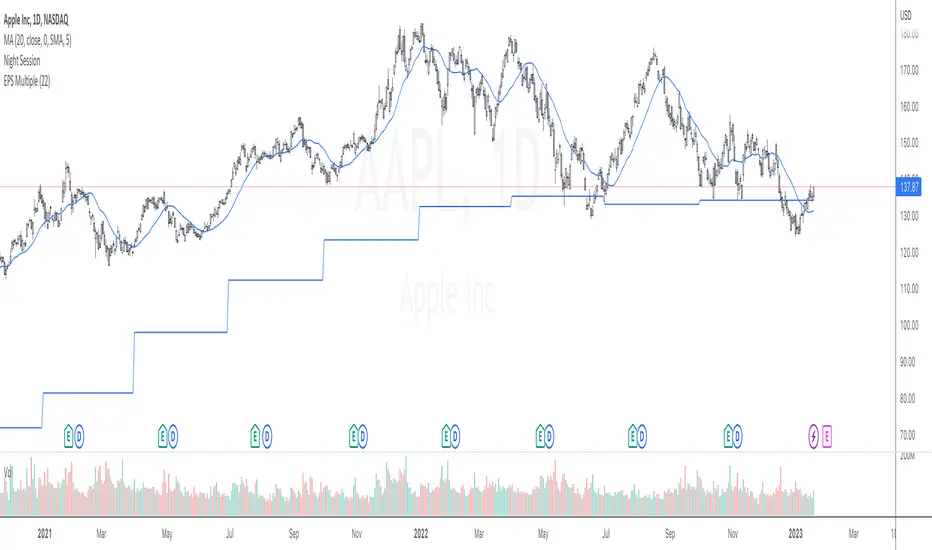 Plots a price line calculated by multiplying the trailing EPS with a custom target P/E value