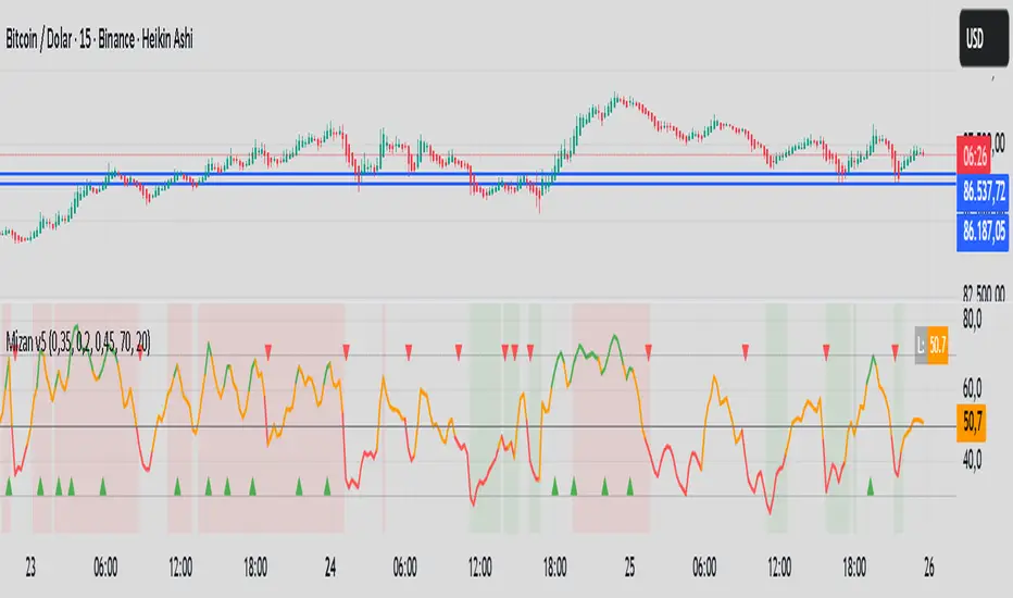 Unlike standard oscillators that blindly follow price action, Mizan v5 operates on a multi-dimensional logic structure to separate "Market Noise" from "True Momentum."