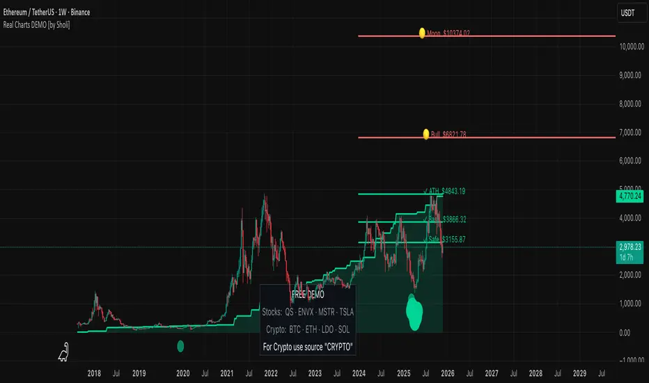 Real Charts is designed to help investors identify fair value zones and potential entry opportunities across cryptocurrency and stock markets. The indicator combines multiple analytical layers into a clean, easy-to-read overlay that highlights when price is trading at historically favorable levels.