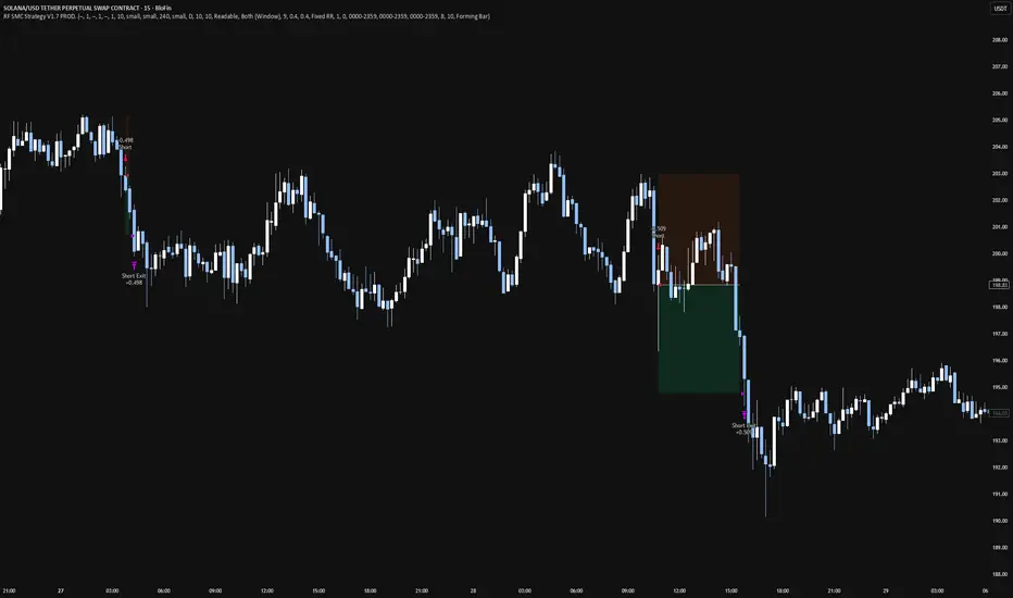 Instead of relying on lagging oscillators, the strategy continuously tracks the active price levels and reacts to structural shifts in real time. It does this on multiple time frames, to find the best entries, and entry models, based on specific criteria.