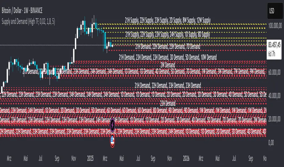 This TradingView indicator is based on an innovative method for identifying Supply & Demand (S&D) zones. Unlike traditional methods that highlight broad areas, making precise trading difficult, this indicator allows for more accurate determination of key price levels. It combines classic S&D analysis with Fibonacci adjustments to identify institutional order blocks and probable turning points.