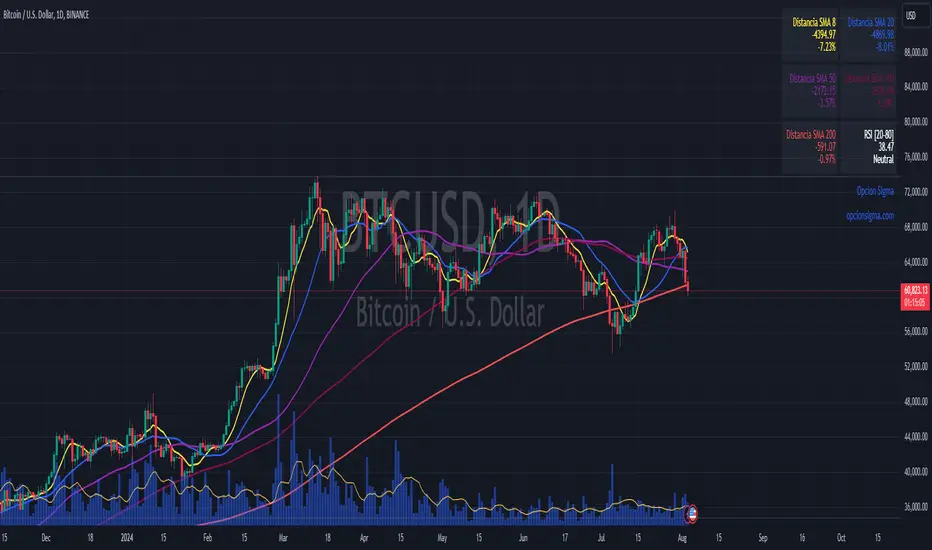 Análisis de Distancia: La tabla de distancias proporciona una visión clara sobre cuánto podría moverse el precio antes de alcanzar un nivel de SMA significativo, ayudando en la gestión de riesgos y en la planificación de operaciones.