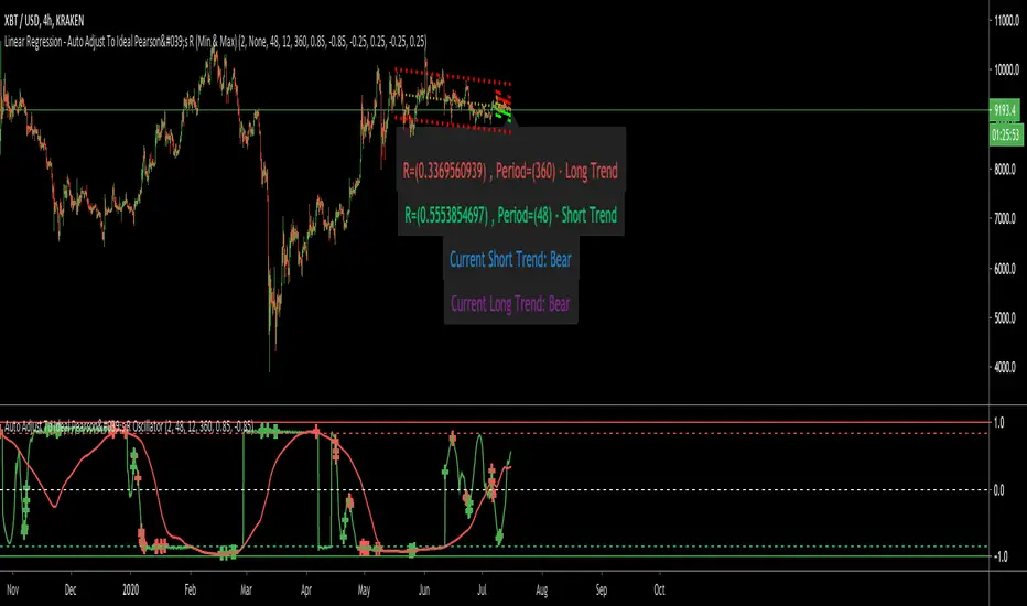 There is a lot of debate as to what the ideal negative and positive values are for the Pearson's R, so you can change these in the settings. What the script will do is attempt to automatically find (and draw the trend lines) based on a given minimum period and a maximum period (both set in the settings) that match the ideal Pearson's R settings selected.