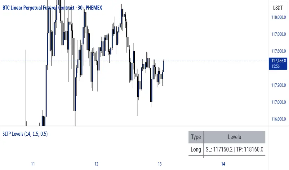 This indicator, "Dynamic SL/TP Levels (ATR or Fixed %)", is designed to help traders visualize potential stop loss (SL) and take profit (TP) levels for both long and short positions, refreshing dynamically on each new bar. It assumes entry at the current bar's close price and uses a fixed 1:2 risk-reward ratio (TP is twice the distance of SL in the profit direction). Levels are displayed in a compact table in the chart pane for easy reference, without cluttering the main chart with lines.