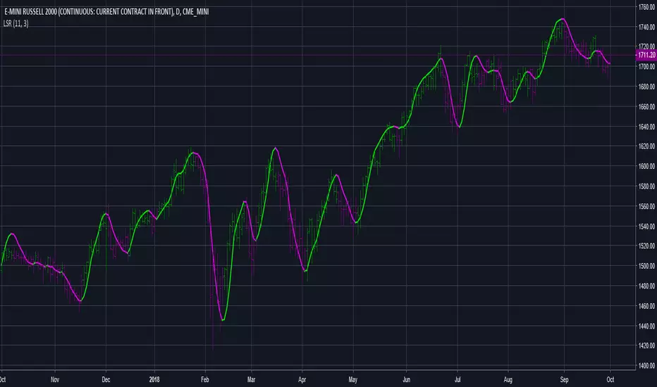B3 Least Squares Regression or "LSR" is very similar to the mid-line at the end of a linear regression channel, except that in a linear regression you cannot see the history of the regression well. There is also the linear regression and least squares curves in some platforms, and this would also be a similar indicator. The smoothness of my indicator and the back-to-basics approach to the mathematics sets it apart from the others. The look of this MA on a chart speaks for itself.