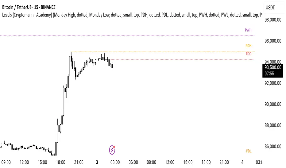 PDH/L, PWH/L, PMH/L, D/W/M/Y open levels, Stock Market open levels