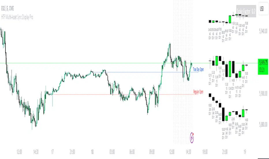 HTF Multi-Asset Sync Display Pro is an advanced visualization tool that allows traders to monitor up to three different symbols simultaneously on a single chart. Whether you're analyzing correlations, divergences, or inter-market relationships, this indicator provides a comprehensive solution for complex market analysis.
