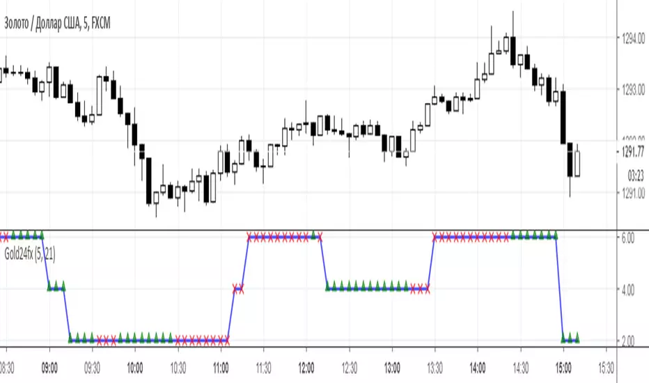 Indicator «Gold24fx» was developed for scalping trading in Gold market. It can be used to define optimal buy entry points when the bullish sentiments prevail.