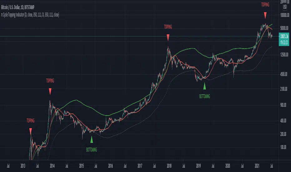 When the 111-Day moving average crosses over the (350-Day moving average X 2), we've seen the price come to a key top or bottom within the Bitcoin market for the past 3 cycles.