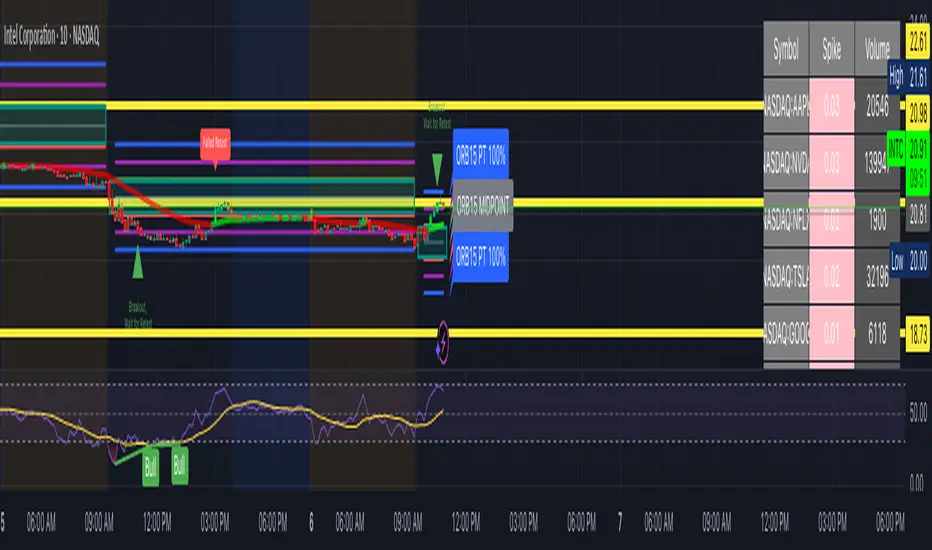 This TradingView indicator monitors the trading volume of a list of selected tickers and detects “volume spikes” by comparing the current volume against a simple moving average (SMA) of past volumes. It calculates a “spike strength” (the ratio of current volume to average volume) and assigns a color based on its intensity. The indicator then displays a sorted table on your chart with each ticker’s symbol, spike value, and current volume. Alerts can be triggered if a ticker’s spike strength reaches specific color-coded levels.