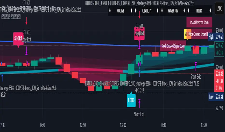 Years of research been done to this strategy It's based on algorithm that detects where the markets are going Works on crypto this strategy his excellent indicators and it can generate a lot of money if you know what you are doing and depending on the fees of the exchanges as well So be smart and be kind God bless you all