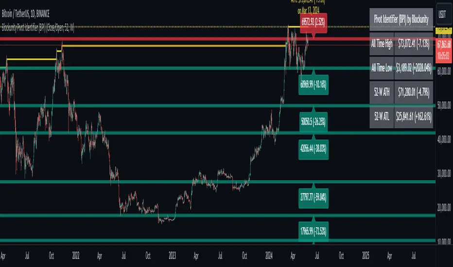 - The intermediate All Time High and Low. By default, this value is set at 52 weeks. In general, the 52 week high represents a resistance level, while the 52 week low is a support level. These periods are configurable in the indicator settings. For example, by putting '30' in the 'Intermediate All Time Lookback' field and '1 day' in the 'Intermediate All Timeframe' field, the intermediate ATH and ATL will be calculated based on the last 30 days.