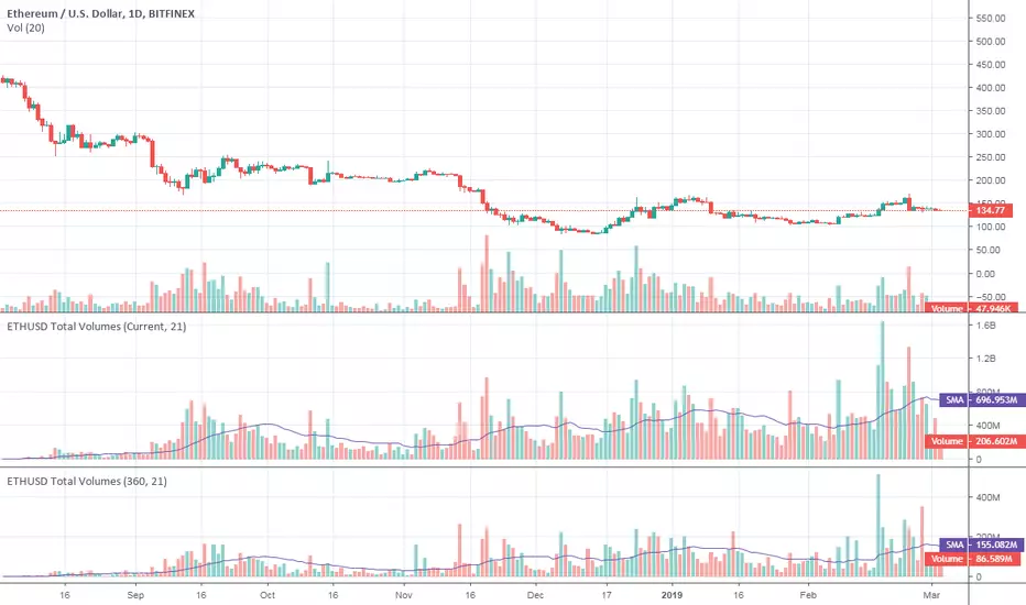 This tool shows you ETHUSD total trade volumes from the all (well, almost) cryptocurrency exchanges on different timeframes.