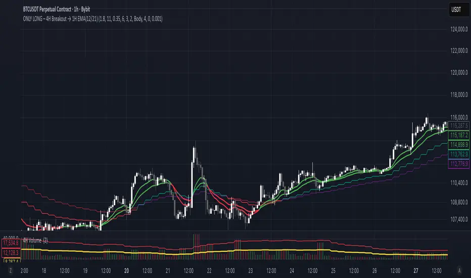 My entry signal is a extraordinary volume candle, a red threshold line can mark “very high volume” zones (SMA × multiplier).