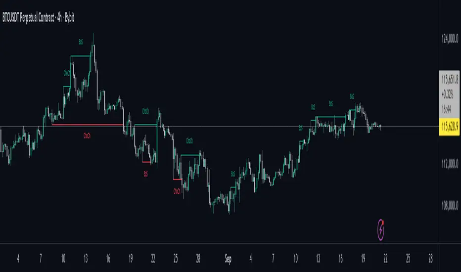 Този индикатор автоматично идентифицира и визуализира ключови моменти в пазарната структура, базирани на концепциите Smart Money (SMC). Той е създаден, за да бъде изчистен, бърз и ефективен.