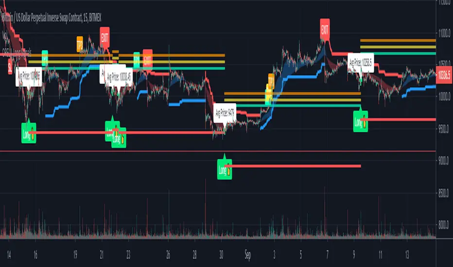 To help identify when the trend is losing or gaining strength the script also has a price following EMA "cloud".