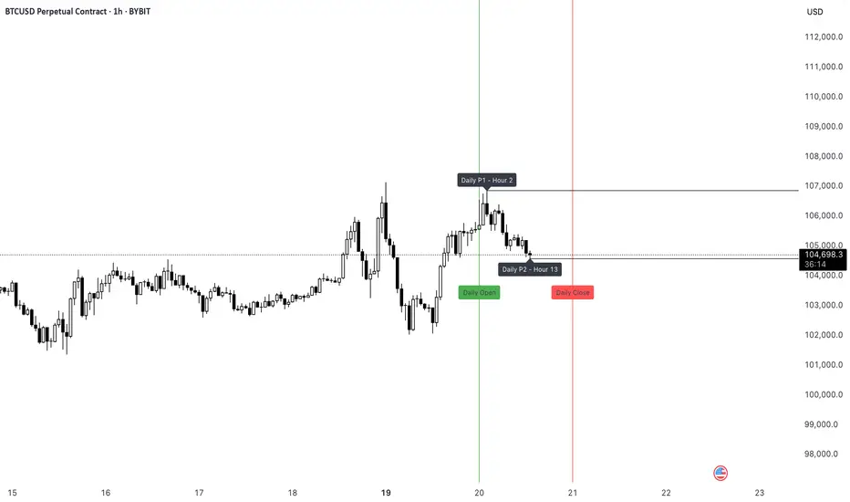 For example, on the daily timeframe if the daily low is marked out as P1 and the daily high is P2, it means that the daily low was put in before the daily high. This mapping of highs/lows is used as support for the BD dashboard and its statistics.