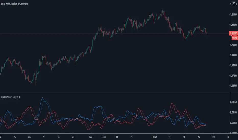 The idea behind the indicator is pretty straightforward: During up trends, green candles tend to be bigger and during down trends, red candles tend to be bigger. So, this indicator tries to measure green and red candle sizes. So, the blue line shows bullish momentum and red line shows bearish momentum. Signal lines also added.