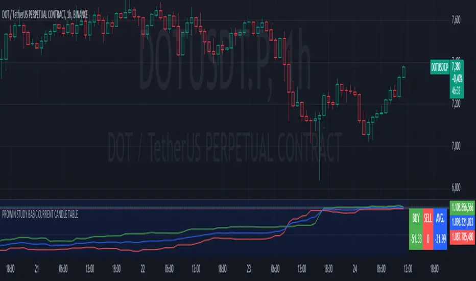 This indicator is designed to help traders gain deeper insights into market volume dynamics and make more informed trading decisions. Whether you're analyzing short-term movements or long-term trends, the PROWIN STUDY BASIC CURRENT CANDLE TABLE offers valuable data at a glance.