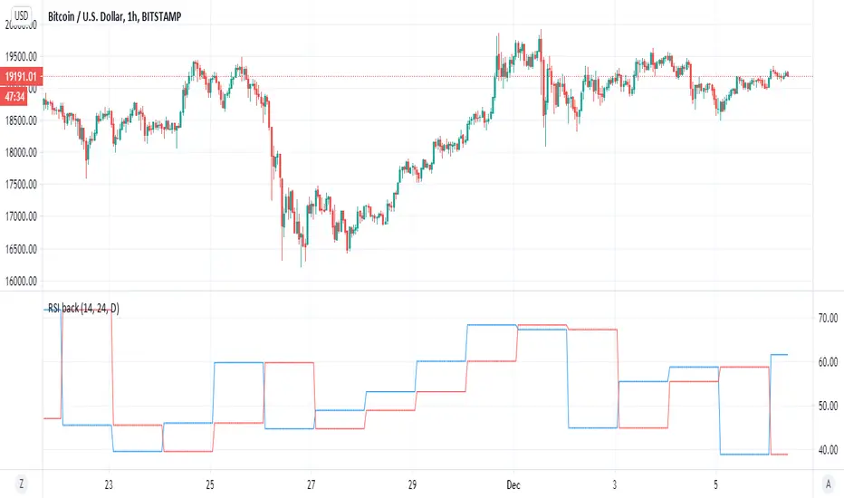 blue line is current MTF RSI , red line is historic RSI based on the number of candles we choose
