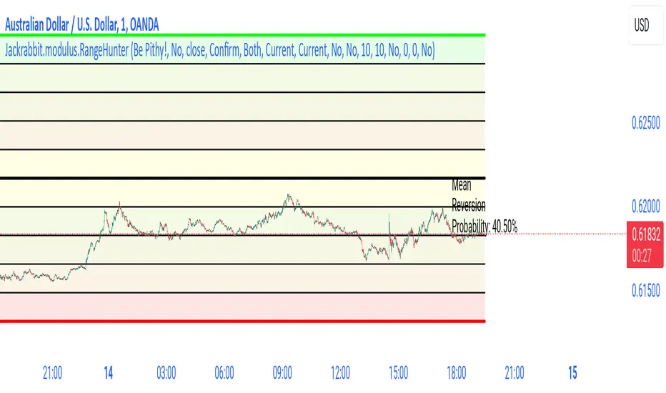 Range Hunter works by finding the highest boundary and the lowest boundary of a time frame. From there, it creates a median by which the market should fluctuate as signs of its health. When the price stays in the upper/lower ranges for too long, the market is considered "unhealthy". Price action should cycle around the median routinele for a healthy market.