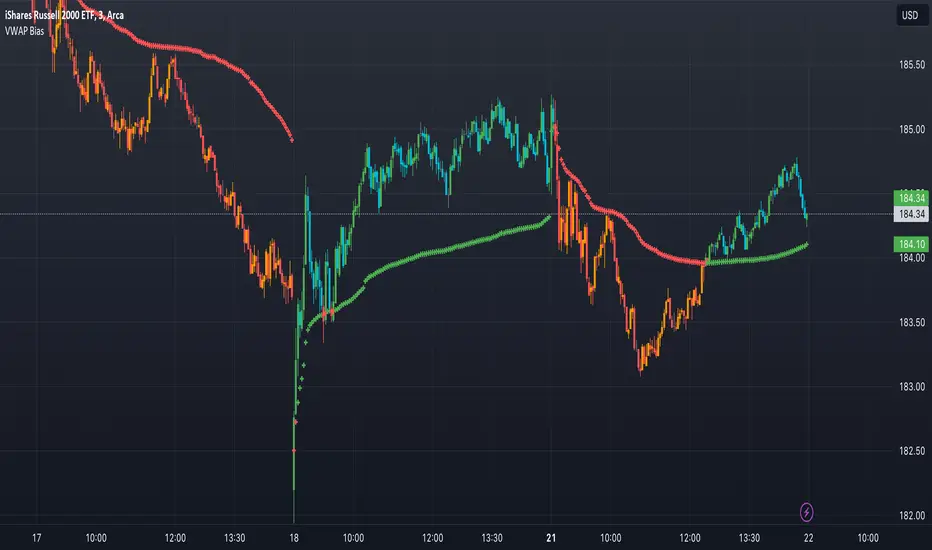 This indicator changes the VWAP line color and bar color based on the current price.