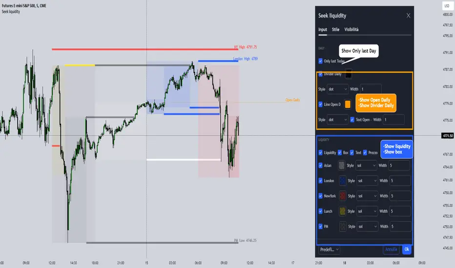 Guided by ICT tutoring, I create this versatile "Seek liquidity" indicator.
