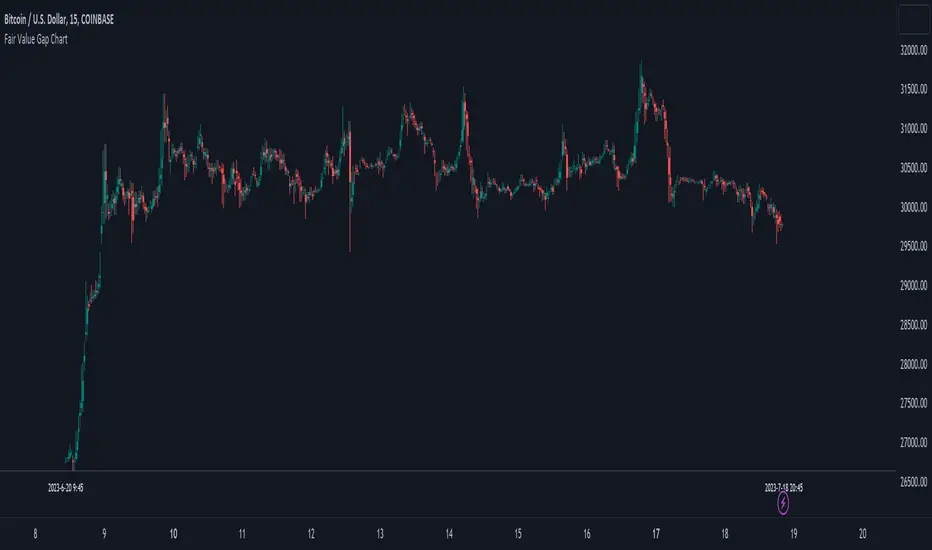 The Fair Value Gap Chart is constructed by keeping a record of all detected fair value gaps on the chart. Each fvg is displayed as a candlestick, with the imbalance range representing the body of the candle, and the range of the imbalance interval being used for the wicks.