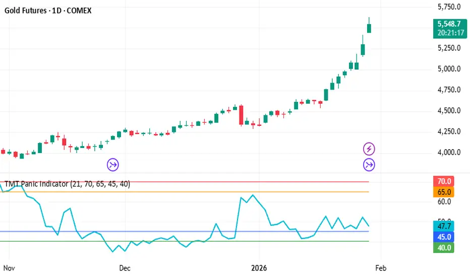 standalone indicator. Measures the emotional polarity of the market — panic vs. complacency — by tracking relative retracement magnitude through a smoothed RSI transform.