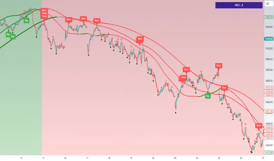 optimized for trading futures on 8 min and 15 min charts, switch to regular trading hours