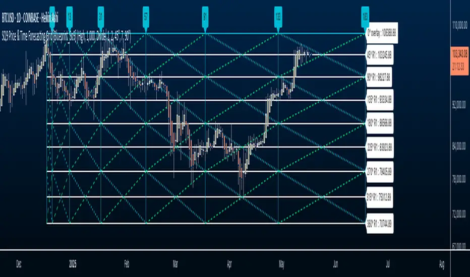 This tool is inspired by concepts from "The Definitive Guide to Forecasting Using W.D. Gann’s Square of Nine" by Patrick Mikula.