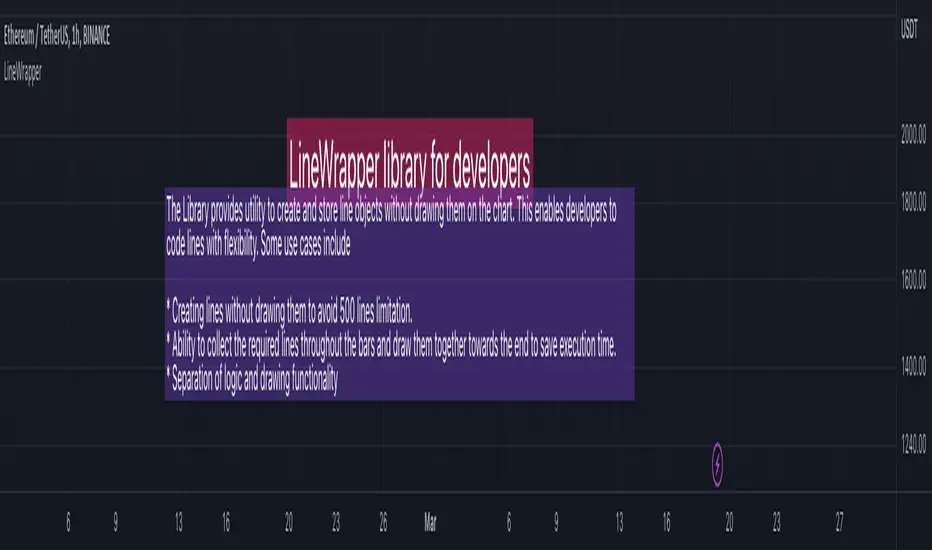 In true TradingView spirit, the author has published this Pine code as an open-source library so that other Pine programmers from our community can reuse it. Cheers to the author! You may use this library privately or in other open-source publications, but reuse of this code in publications is governed by House Rules.