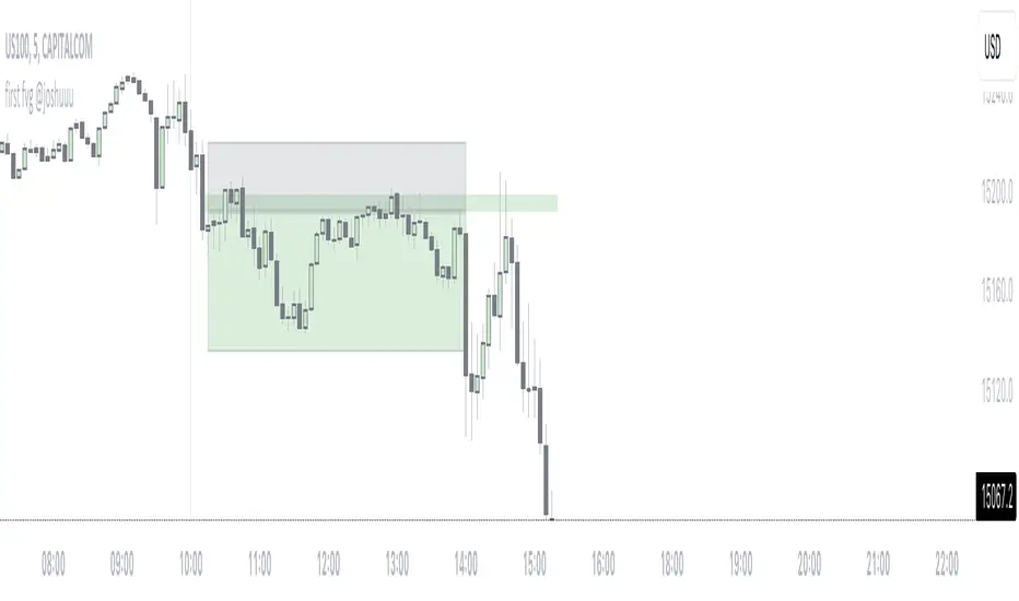 This indicator was created to display and alert the user for the first Fair Value Gap (FVG) of up to three trading sessions.