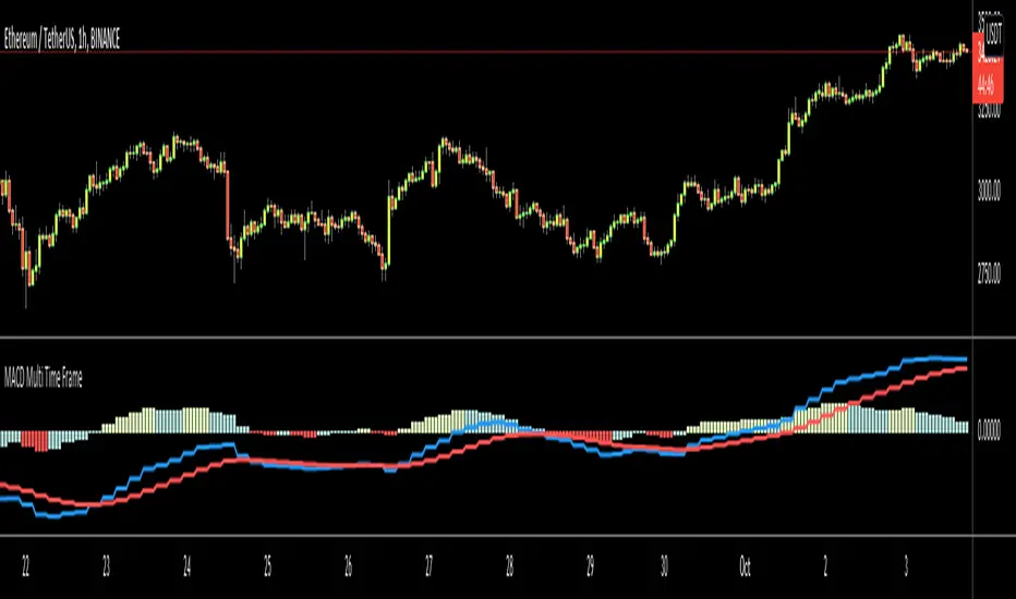 This is non-repainting multi time frame MACD script. You can choose HTF manually or HTF is calculated automatically if HTF Mode is "Auto" that is default.