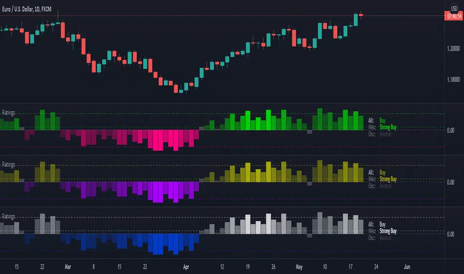 v3This indicator now uses functions from our TechnicalRating library to calculate its output. Additionally, this indicator's results are now the same as those from the speedometers in the technical analysis summary and the "Rating" indicator in the Screener, when default settings are used.
