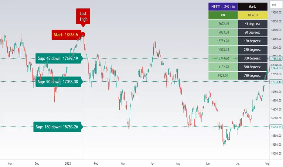 If you pick a high pivot the indicator will draw levels of support according to W.D.Gann's formulas.