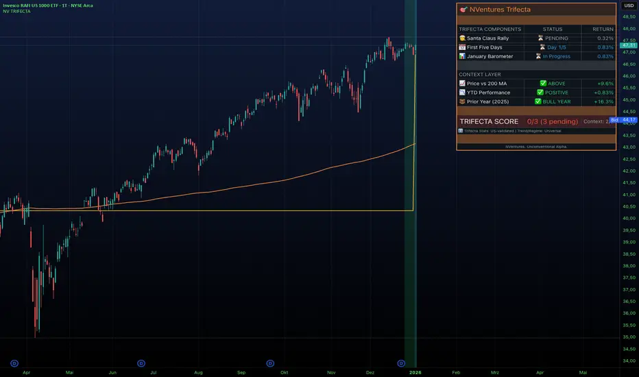 - Post-Bear Market Detection โ Automatically identifies when a 3/3 bullish trifecta follows a negative prior year - historically the highest conviction setup.