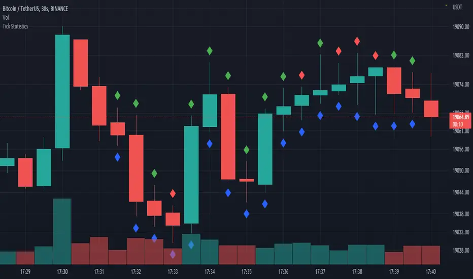 Generated statistics is shown on the chart by placing 2 diamond shapes above and below the candle.