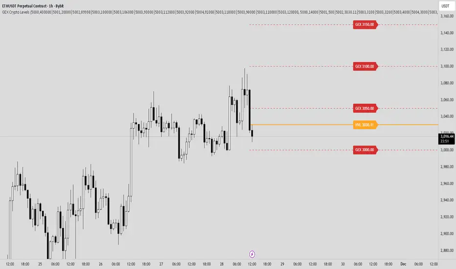This indicator displays real-time Gamma Exposure (GEX) levels and key options metrics for major cryptocurrencies directly on your TradingView charts.