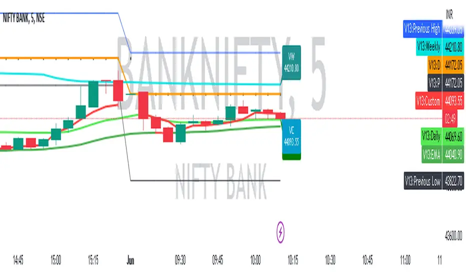 The Custom VWAP EMA indicator developed by Vedic Trading is a powerful technical analysis tool designed to provide traders with valuable insights into market trends and potential trading opportunities. This indicator combines the Volume Weighted Average Price (VWAP), Exponential Moving Average (EMA), and other key price levels to generate accurate signals and assist traders in making informed decisions.The indicator calculates the VWAP for three different timeframes: 30 minutes, day, and week. VWAP is a popular technical analysis tool used by traders to determine the average price at which a security has traded throughout a given period, weighted by the trading volume. By incorporating VWAP into the indicator, it offers a comprehensive view of price action and market sentiment.