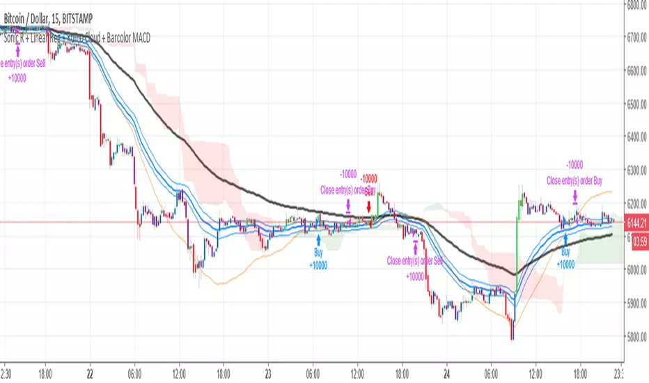 Sonic R + Linear Reg + Kumo Cloud + Barcolor MACD