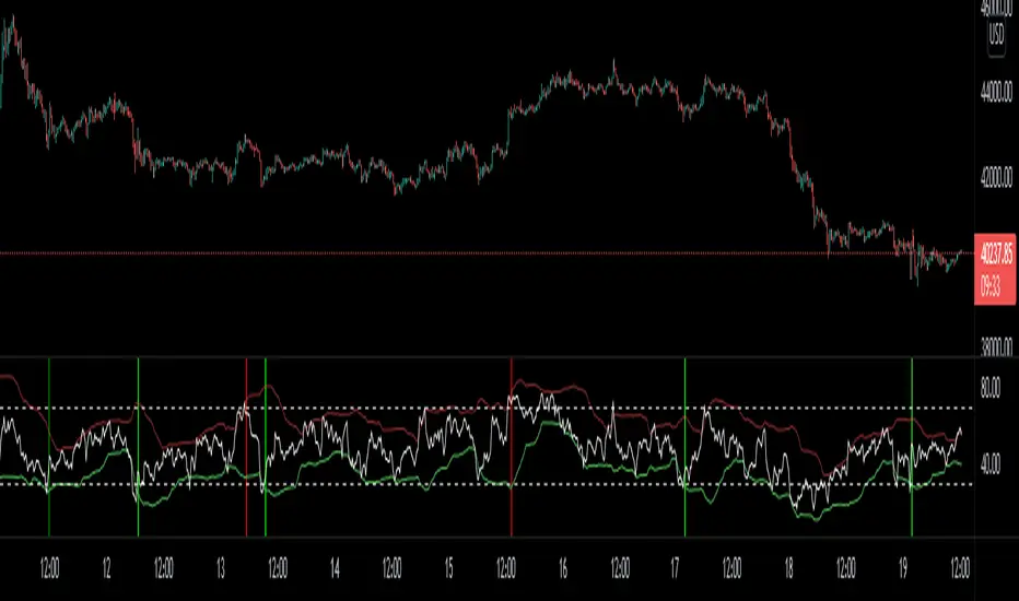 This is a RSI cross Bollinger Band indicator that paints bgcolor short and long signals when the RSI cross's up through the lower bollinger band ( Long ) or cross's down through the upper bollinger band ( Short )