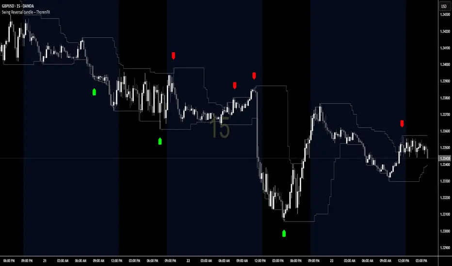The Swing Reversal Candlestick Pattern is a professional-grade indicator engineered by ThorenFX Labs for precision swing detection and candlestick-based reversal identification.