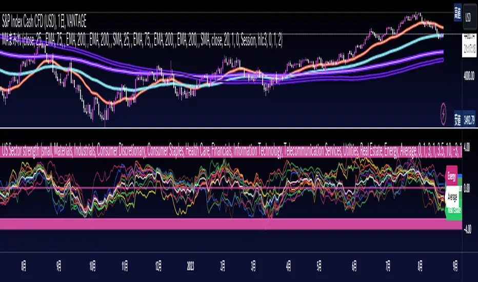 This indicator is designed to normalize the S&P 500 by sector. You can choose to normalize using the Z-score, DEMA, or MinMax. When using the Z-score or DEMA, a level line is displayed.