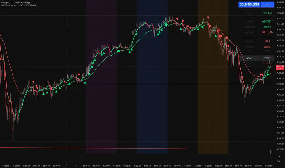 Tags: Gold Trading, XAU/USD, Trend Following, MACD Strategy, Stochastic RSI, Session Trading, Day Trading, Scalping, London Session, New York Session, EMA System, Multi-Timeframe Analysis, Trading Dashboard, Performance Tracking