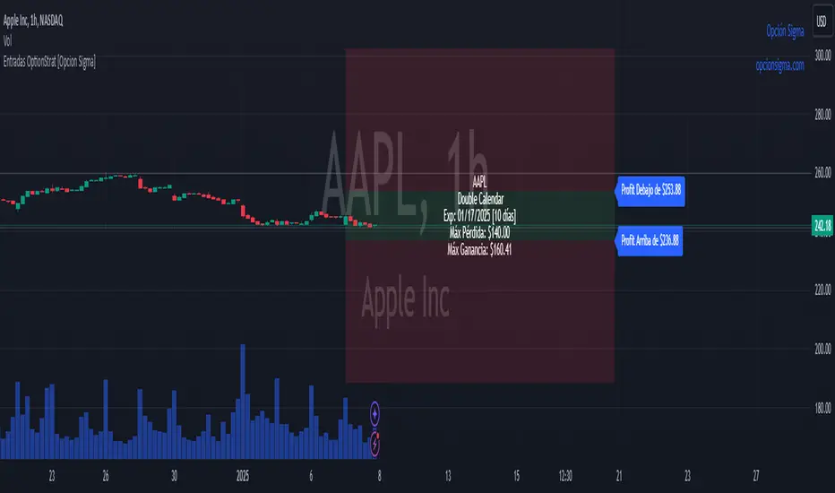 Entradas OptionStrat es un indicador técnico que facilita la integración de estrategias de opciones de Option Strat en TradingView. Este indicador permite a los traders visualizar información importante de sus operaciones de opciones, como breakevens, fechas de expiración y métricas de riesgo y beneficio, en una plataforma visual como TradingView. Esto les permite monitorear y exhibir estas estrategias junto con otros indicadores para un análisis más completo y dinámico.