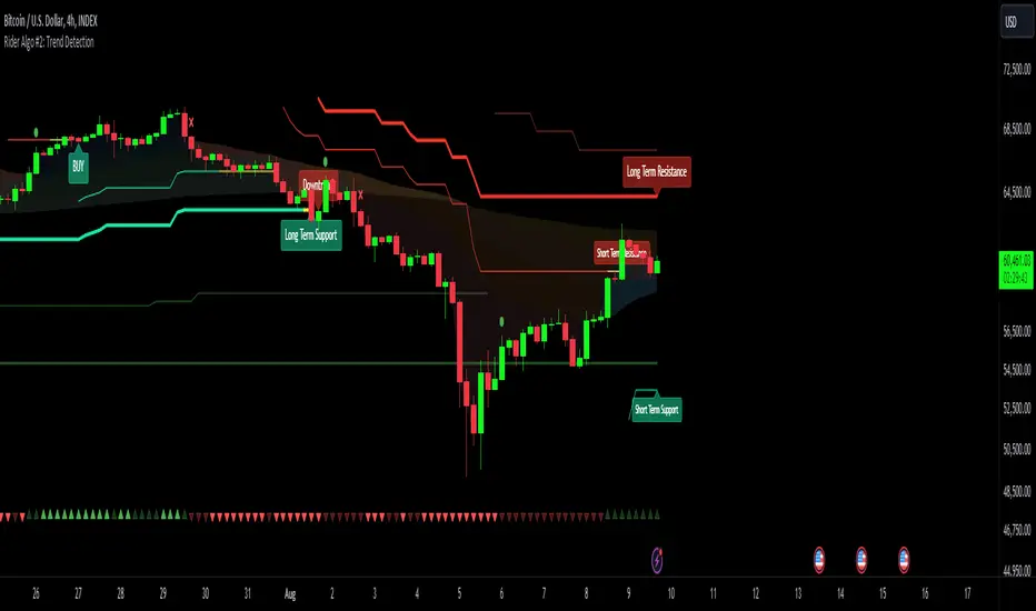 We've added BUY and SELL signals that only appear when they align with the Uptrend and Downtrend signals. This double confluence increases the accuracy of these signals. TIP: Always look for a good entry point after the labels appear. - (Volume Alert Added)